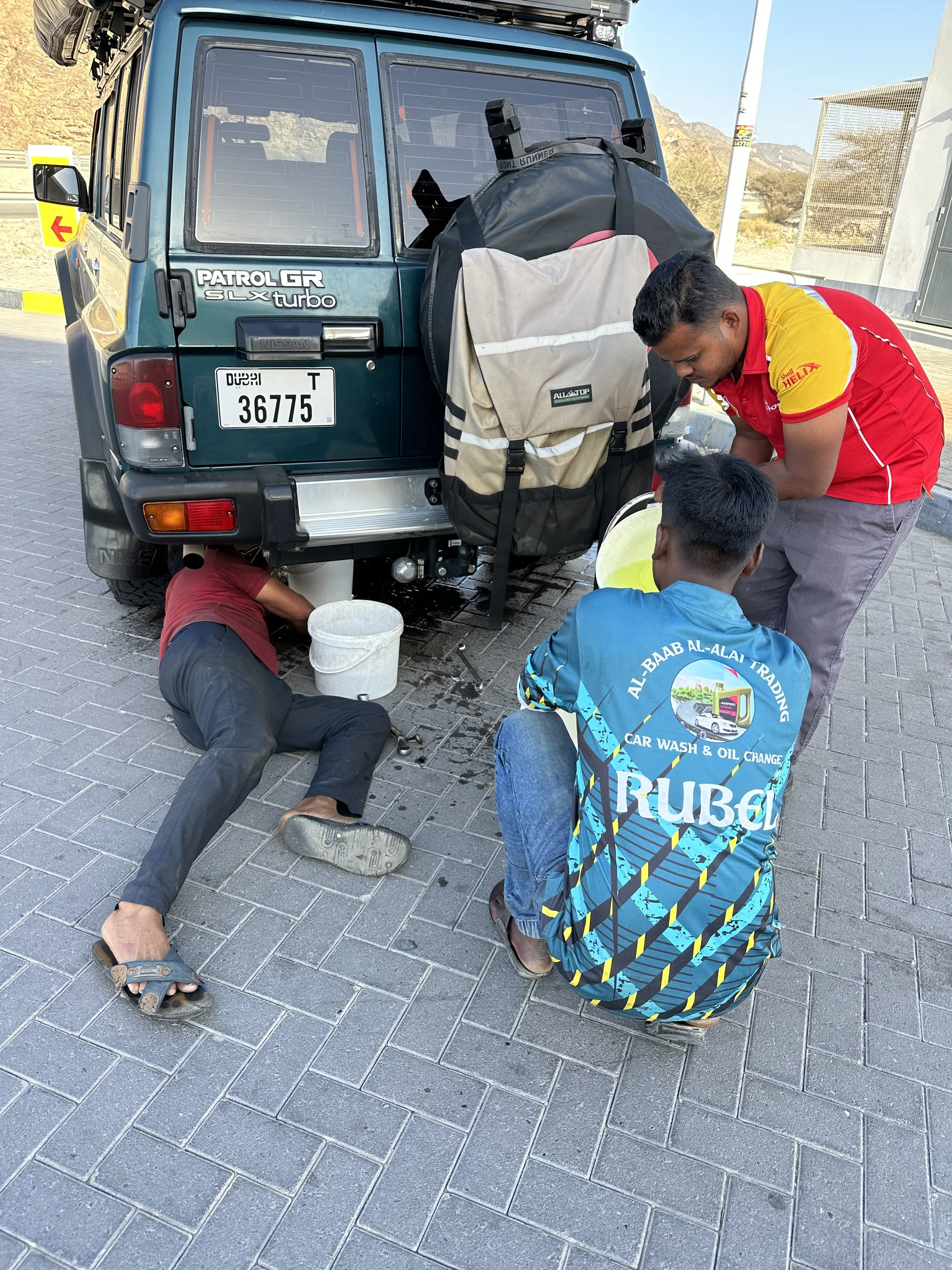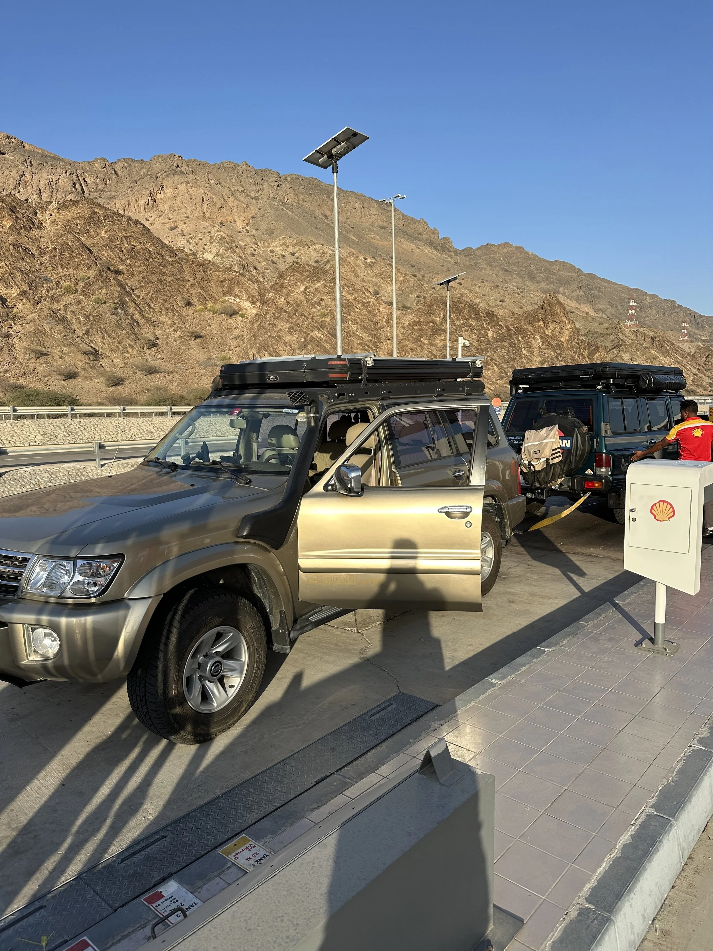The first two cars met up after an uneventful border crossing and pushed on down the long expressway towards Muscat. Although this is a long straight drive, it is the fastest way to cover some serious distance and get to where you want to be. Once past Muscat we started to get to where we needed to head off road. So, we decided to stop at a small petrol station to top off the tanks before heading into isolation.