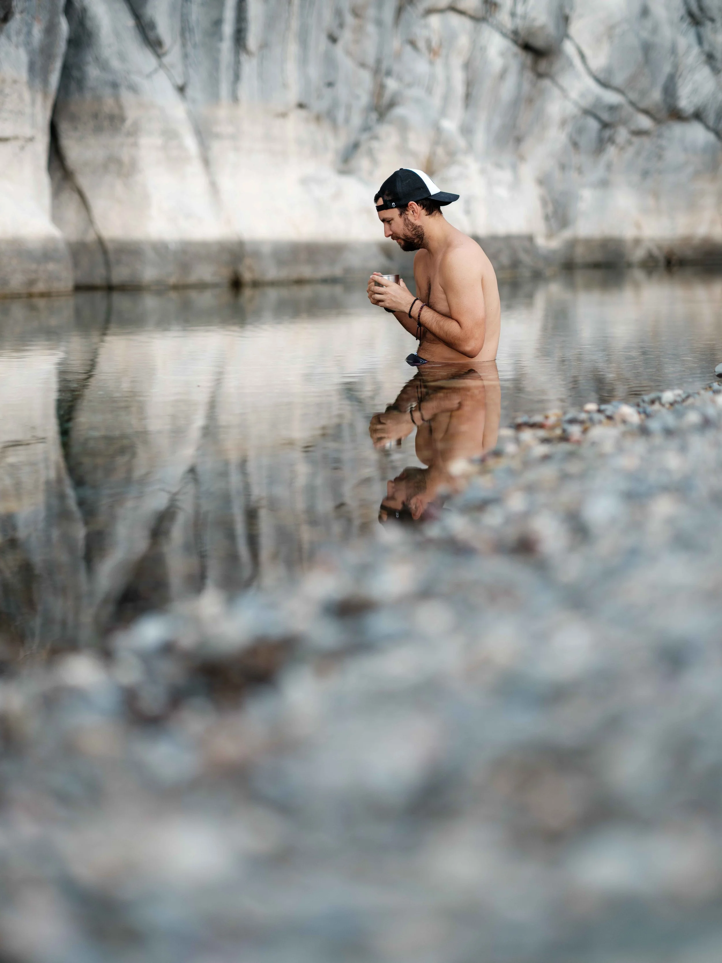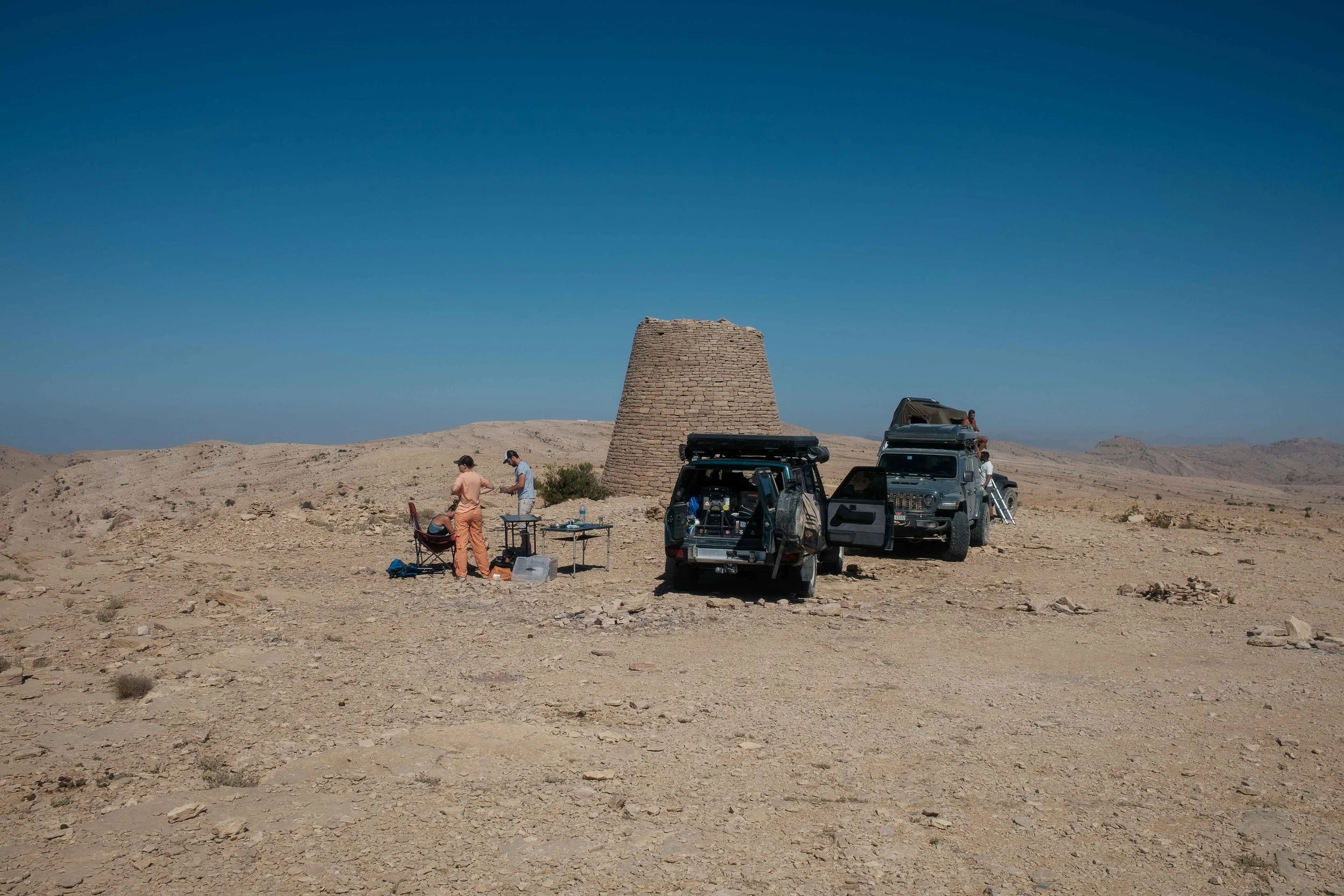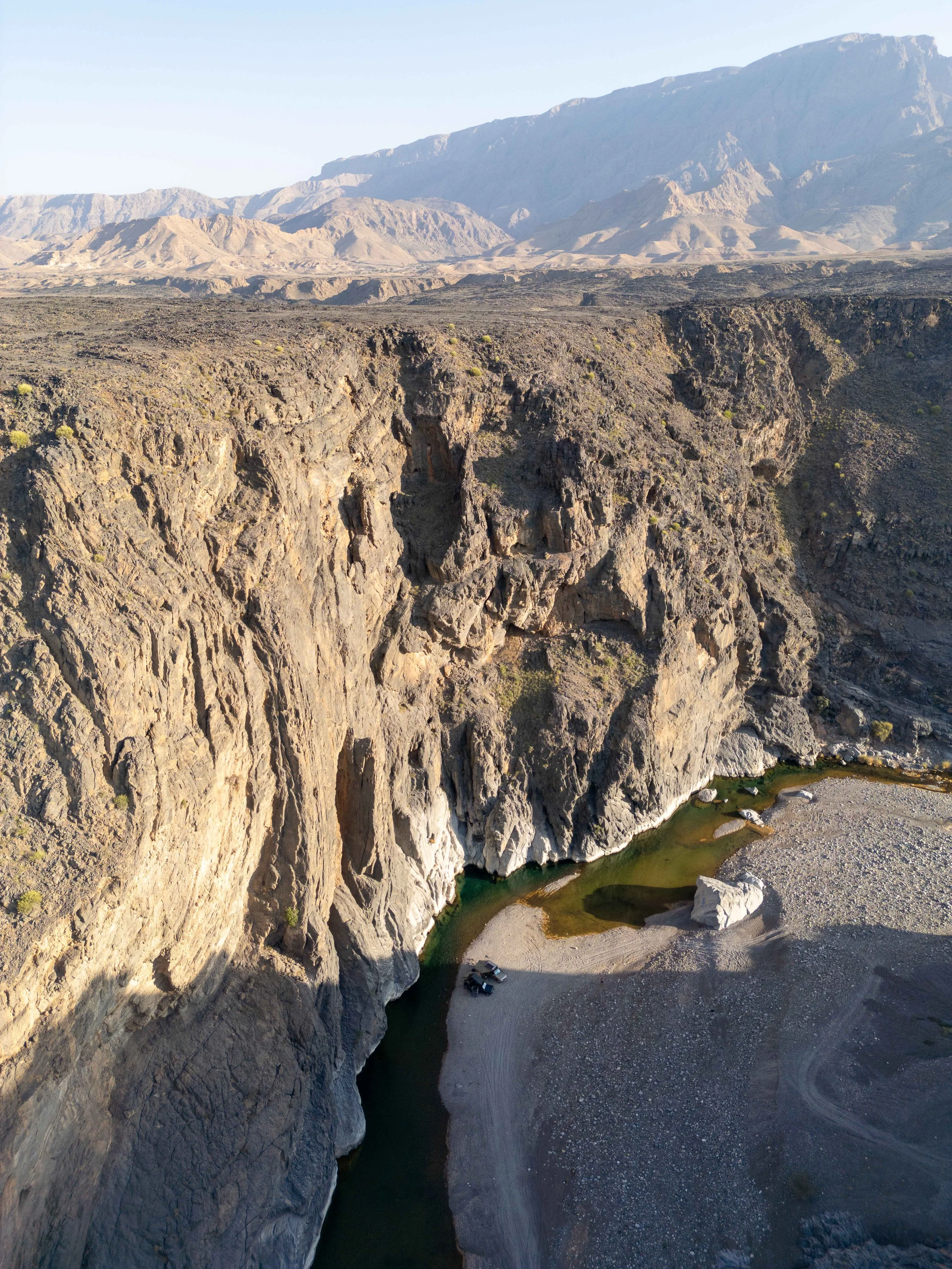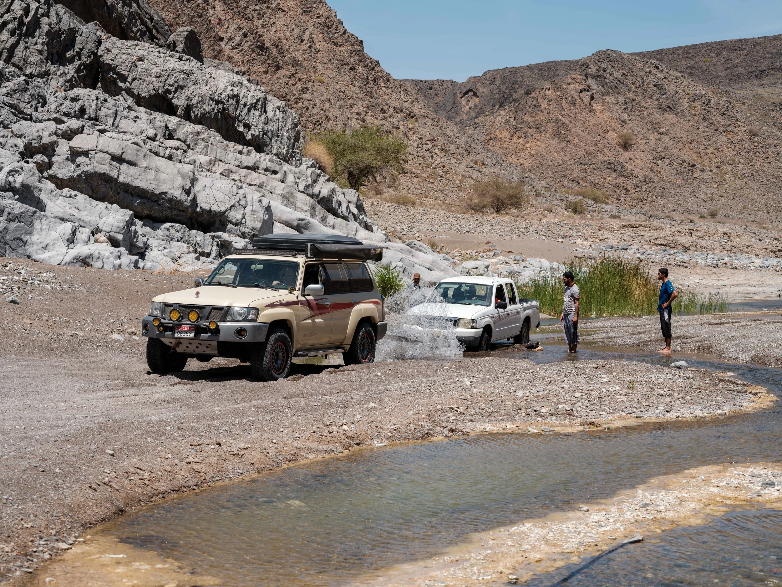 After a long drive and a quick dinner we had gone to bed fairly early. Luckily, the spot where we chose to camp had the added bonus of shade from the wadi cliff face until late in the morning. This meant that we weren’t woken up by hot tents as soon as the sun came up. The water in the wadi was flowing and very fresh, so it was perfect for a morning dip. Morning coffee and breakfast were casually prepared and we settled in for a nice long day of doing a lot of not much. Some tinkering with the cars, reading a book, broken up by regular swims and coffee top ups. The solar panels were making the most of the sun and we had both awnings out to create a nice big shady patch. Life was good.