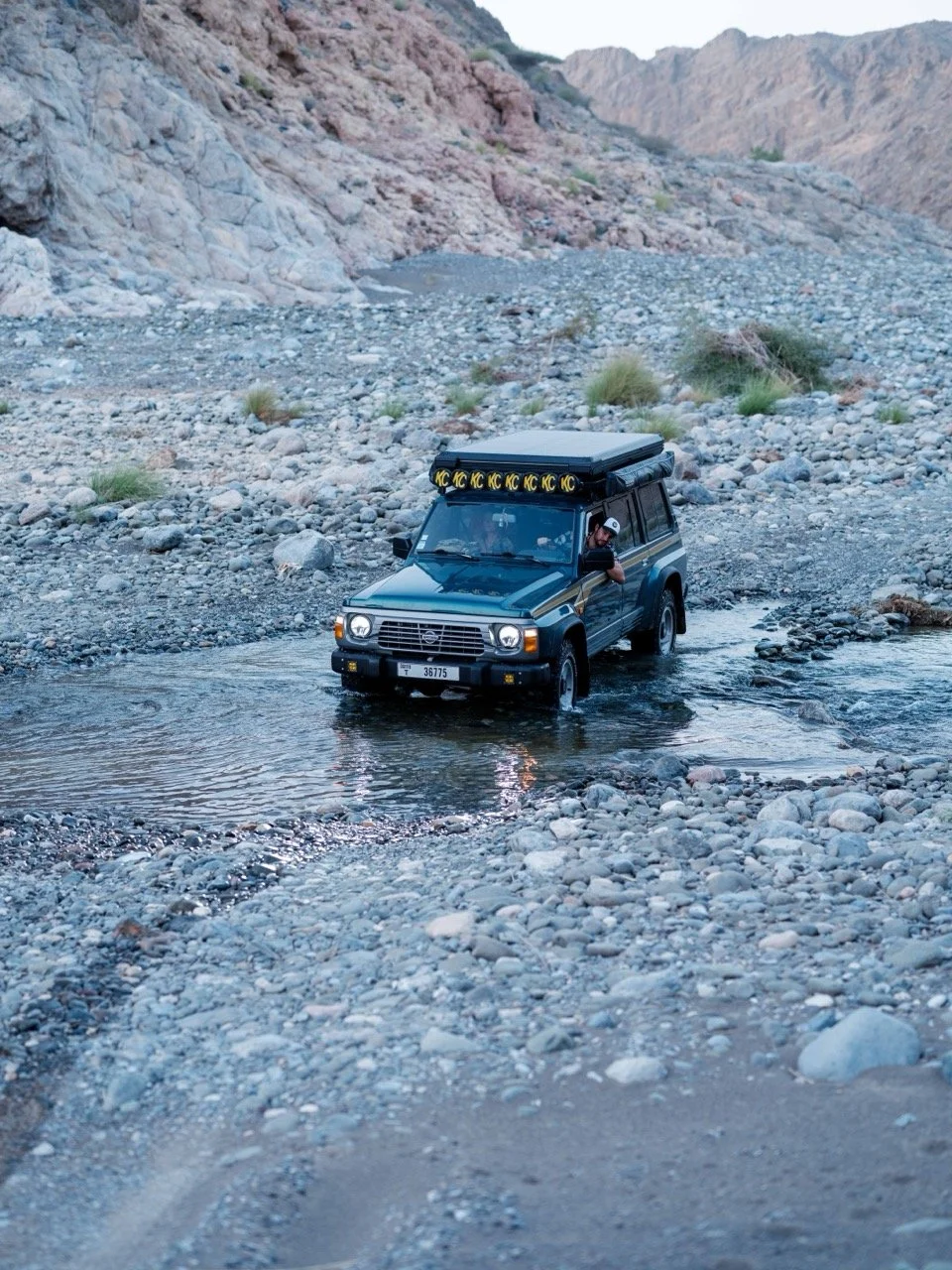 Once off road, this wadi is pretty spectacular to drive through as there is a constant flow of fresh water. This snakes its way down the wadi, creating multiple water crossings to the camp site. It’s a bit like jumping in puddles as kid when you have a pair of wellies. Every 4X4 owner loves to drive through water and they always have the biggest grin on their face when they do. Unless they are a moron and try to drive through the sea or a raging torrent. Then they just have pure fear and disappointment on their face.